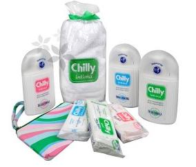 | Ceny: | dárkový balíček pro intimní hygienu. Balíček obsahuje 3x intimní gel (Antibacterial, Fresh, Delicate - každý 200 ml), 3x intimní ubrousky (Antibacterial, Fresh, Delicate - v každém 12 ks), bílý ručník s logem Chilly a kosmetickou taštičku. |