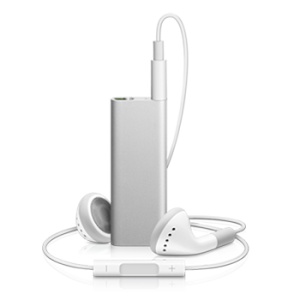 Miniaturní MP3 přehrávač s velmi elegantním designem a hmotností pouhých 10 g. Díky unikátní hlasové funkci (která je dostupná i v češtině) Vám do sluchátek přečte název skladby, interpreta, playlist ve kterém je písnička uložena a prozradí také nízký stav akumulátoru. Veškeré ovládání přístroje bylo přeneseno na miniaturní panel, který je součástí dodávaných sluchátek. Díky tomu bylo dosaženo opravdu miniaturních rozměrů. Přehrávač podporuje formáty AAC, MP3, Audible, Apple Lossless, WAV a AIFF. Pro nahrávání hudby a nabíjení slouží rozhraní USB.
