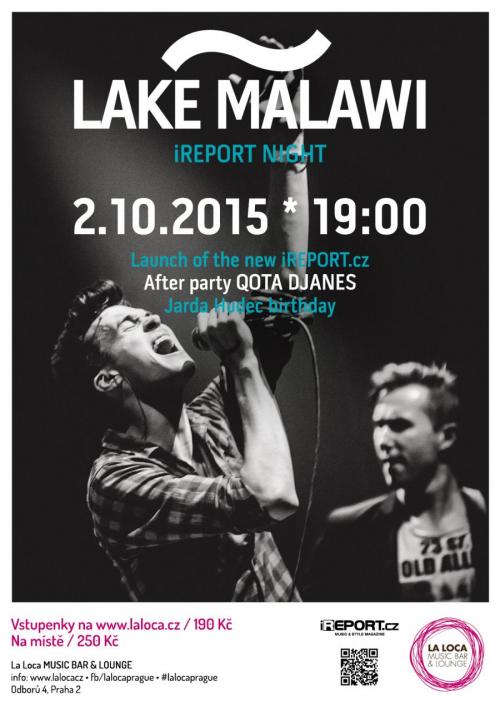 Hrajeme o 3x 2 vstupy na iREPORT NIGHT, která se odehraje 2. října v pražském klubu La Loca. Na programu je koncert Lake Malawi, after party s QOTA DJanes, křest nového designu iREPORT.cz a narozeniny Jardy Hudce. Dále vyhrajete 3 ks aktuálního CD Lake Malawi We Are Making Love Again.