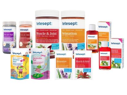 Koupelové přípravky značky tetesept zahrnují koupelové soli, koupelové koncentráty i koupelové perly pro děti i dospělé a jejich účinky se zaměřují na typické zdravotní problémy plynoucí z hektického životního stylu.