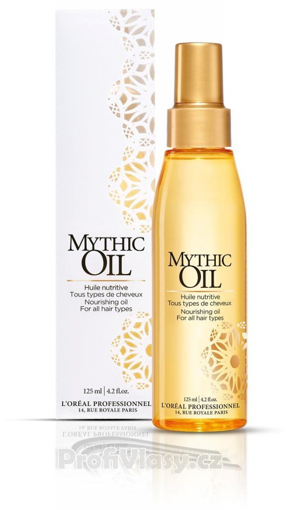 Olej na vlasy Loreal Mythic oil obsahuje inovativní kombinaci avokádového a hroznového oleje. Chytrá kombinace složek poskytuje snadné vstřebávání do vlasů. Neoplachuje se. Síla přípravku Mythic Oil spočívá v 5-ti klíčových prvcích: pružnost – pomáhá lépe upravovat vlasy, výživa – hydratuje a vyživuje barvené, chemicky poškozené, nadměrně foukané nebo žehlené vlasy, anti-frizz ochrana pomáhá zastavit pronikání vlhkosti do vlasů, a tím brání krepatění,snižuje dobu sušení, restrukturalizuje vlasy, vyplňuje mezery ve vlasech, což urychluje dobu schnutí a zlepšuje pružnost vlasů. intenzivní lesk – dodává vlasům intenzivní záři.