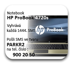 SMS soutěž o Notebook HP Pro Book 4720s. Pošli SMS ve tvaru PARKR2 na tel. číslo 900 20 50 a vyhraj. Vyhrává každá 1444. SMS. Bližší informace a podmínky soutěže na www.smsvyhrava.cz.Cena za odeslání SMS zprávy je 50,- Kč vč. DPH. Služba je dostupná v sítích Telefonica O2, T-mobile a Vodafon.