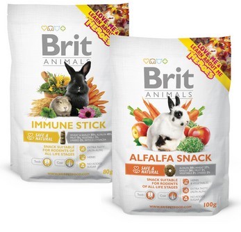 | Ceny: | Pět výherců může vyhrát čtyřsetkorunový balíček Brit Animals dle svého výběru a pamlsky pro hlodavce Brit Animals Immune Stick nebo Brit Animals Alfalfa Snack. |