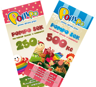 Dva soutěžící, kteří odpoví na 3 soutěžní otázky a splní podmínky soutěže, získají šeky do hračkářství POMPO v hodnotě 500,- a 250,- Kč.