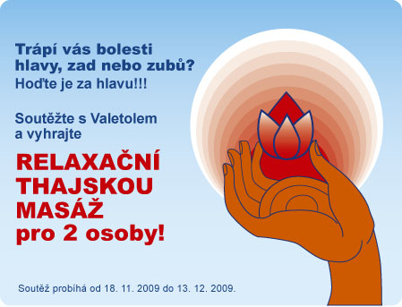 rápí vás bolesti hlavy, zad nebo zubů? Hoďte je za hlavu!!! Soutěžte s Valetolem a vyhrajte relaxační thajskou masáž pro 2 osoby nebo jednu z dalších 49 cen!