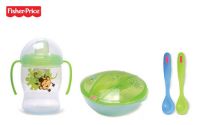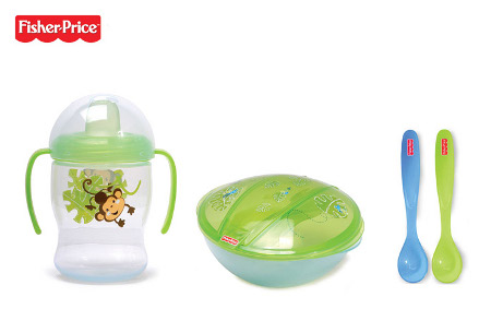 První sada nádobí Fisher Price je určena pro děti od tří měsíců a je to první skutečný jídelní set pro Vaše batole. Obsahuje netekoucí hrneček s oušky o objemu 250 ml, misku na přikrmování a dvě cvičné lžičky s ergonomickým tvarem pro snadnější uchopení a držení. Vše s potiskem motivů zvířátek z deštného pralesa. První sada nádobí je i praktickým dárkem a vyrábí se v barvách pro chlapce a děvčata. Odpovězte správně na soutěžní otázku a 3 z vás vyhrují tuto krásnou sadu nádobí pro vaše děťátko.