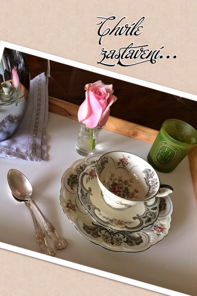 Soutěž o starožitný hrneček s podšálkem, s růžičkami a černou krajkou. A chybět samozřejmě nesmí ani dezertní talířek, jelikož kdy jindy si zamlsat:-)