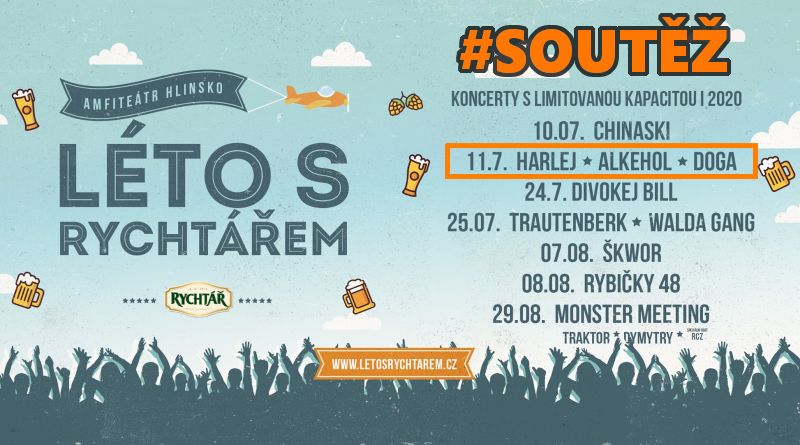 SOUTĚŽ: SOUTĚŽ o vstupenky na Léto s Rychtářem – HARLEJ + DOGA + ALKEHOL do Hlinska