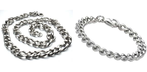 Set obsahuje masivní náramek a řetízek z chirurgické oceli.