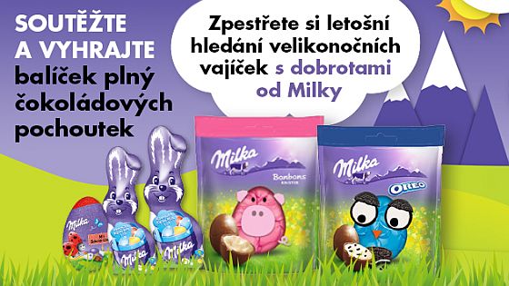 Zodpovězte správně soutěžní otázku a 10 z vás, kteří splní pravidla soutěže, získá balíček MILKA v hodnotě 250 Kč ve složení: 2x Bunny, Funny Egg, Kinster bonbons, Oreo Egg.