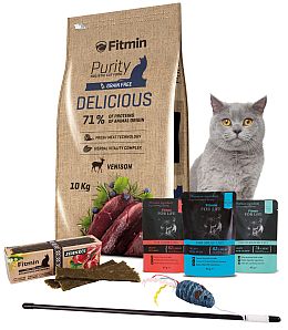 Zodpovězte správně soutěžní otázku a 5 z vás, kteří splní pravidla soutěže, získá balení granulí Fitmin Purity Delicious 1,5kg, ve kterých najdete bohaté zastoupení čerstvé zvěřiny, ovoce i zeleninu a bylinky na podporu organismu a vitality. Navíc můžete soutěžit i o přírodní pamlsky Fitmin Purity Snax, kterými uspokojíte jazýček i těch nejmlsnějších koček. Součástí výherního balíčku jsou také 3 kapsičky Fitmin For Lifea hračka pro kočku Mávátko s myškou. Hodnota výhry je 500 Kč.