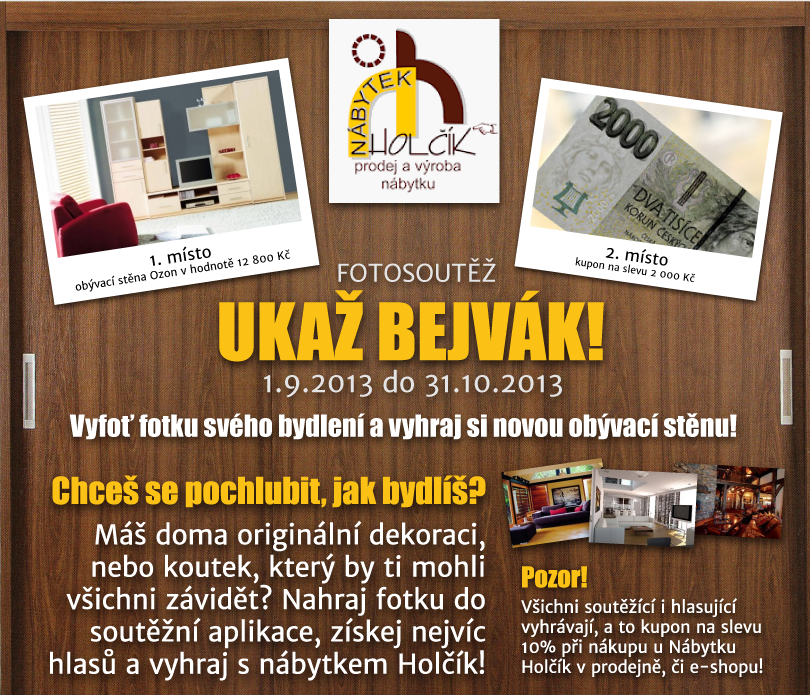 Chceš se pochlubit, jak bydlíš? Máš doma originální dekoraci, nebo koutek, který by ti mohli všichni závidět? Nahraj fotku do soutěžní aplikace, získej nejvíc hlasů a vyhraj s nábytkem Holčík!