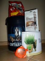 | Ceny: | 1.cena - plastový barel na krmivo a granule Frolic 2kg 2. cena - plechová dóza na krmivo a pochoutka pro kočky Let´s Bite! 3.cena - bateriové rádio ve tvaru rybky |
