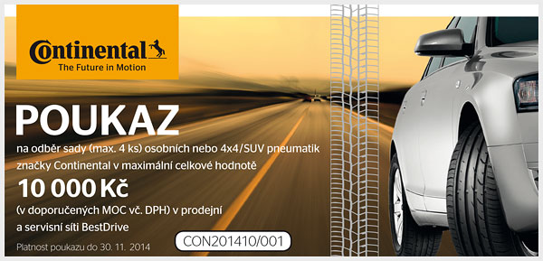 Chcete přezout svůj vůz na tuto zimu snadno a rychle? Zapojte se do soutěže a vyhrajte jeden ze 3 poukazů v hodnotě 10 000 Kč na nákup zimních osobních pneumatik Continental.