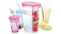Zapojte se do soutěže o džbán s oddělenou přihrádkou na čerstvé ovoce či bylinky, plus čtyři pohárky s víčkem. Bez obav z převržení nebo otravného hmyzu. Praktická sada na letní posezení na zahrádce, na terase, nebo na piknik. Osvěžte se!