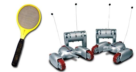 Zajímavá hra, která vás bude možná i trochu bolet. Balení obsahuje dva tanky a dálkové ovladače. Na celé věci jsou asi nejzajímavější právě ty dálkové ovladače. Futuristicky vyhlížející tanky na pásových kolech můžete ovládat nejen co se týče pohybu, ale také střelby. Zvukem doplněná střelba z infračervených děl vašemu protivníkovi uštědří elektrický políček prostřednictvím jeho dálkového ovladače. Pro případ upuštění ovladače máte možnost si jej připnout k ruce šňůrkou.