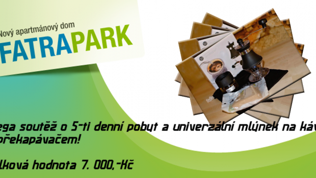 A je to tu! Přichystali jsme pro Vás první soutěž, kterou pořádáme společně s e-shopem GrindRipper.cz a apartmány FatraPark na Slovensku. Do soutěže tito sponzoři věnovali ruční mlýnek s překapávačem na kávu + 250g balení čerstvě pražené zrnkové kávy Costa Rica Tarazzu a 5-ti denní pobyt na Slovensku v jednom z apartmánů FatraPark. Výherci tedy budou dva, první vyhraje 5-ti denní pobyt na Slovensku a druhý ruční mlýnek na kávu, tzv. GrindRipper.