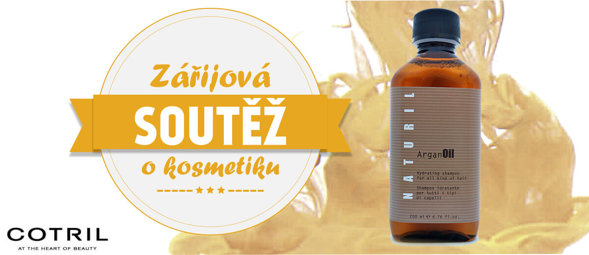 Portál zaměřený na vlasovou péči a vlasovou kosmetiku INHAIR AKADEMIE vyhlašuje zářijovou soutěž o hydratační šampón NATURIL 200 ml v hodnotě 333 Kč. Cotril Naturil Argan Oil je řada výrobků vlasové kosmetiky, která využívá přírodních certifikovaných složek bio původu. Produkty Cotril Naturil Argan oil jsou vhodné pro všechny typy vlasů. Složení je obohaceno o cennou certifikovanou kombinaci přírodních prvků biologického původu.